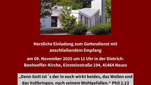Der Gottesdienst des Neusser Gemeindeverbandes zum Reformationstag in der Dietrich-Bonhoeffer-Kirche am 31.10. um 18 Uhr